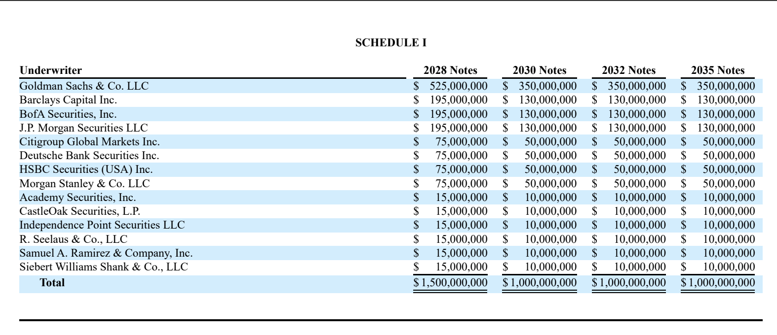Below is one of the actual pdf screenshot "underwriting table" from Apple SEC filling document FORM 8-K May 5 , 2025 used for our detailed case study , we will be using this as "ground truth":
